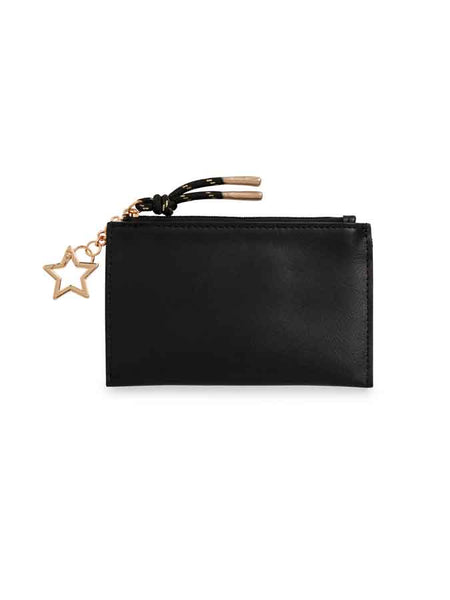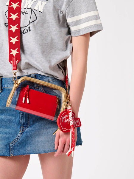 Meet the Taylor Card Case – your new MVP for game day and every day! This sleek and compact card holder features a top zip closure for coins or cash, plus two credit card slots and a clear ID window for quick access. An outer slip pocket adds extra convenience, and a playful gold star keychain adds a fun, sporty touch.